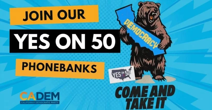 Join our virtual phonebanks and help stop the Trump / MAGA agenda. Trump is trying to rig the midterm elections and passing Prop 50 is the best chance we have of taking back Congress next year.